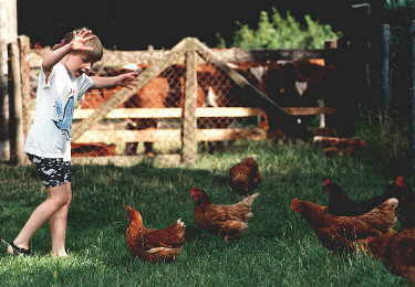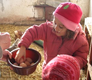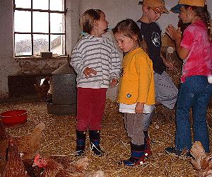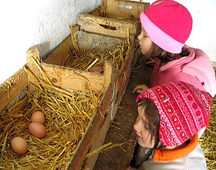 Hühner gibt es natürlich auch. Sie sorgen für Ihr frisches Frühstücksei.