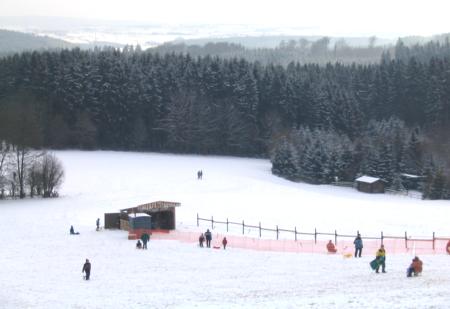 Rodelliftes am Hang in Udenbreth. Die Loipe Udenbreth - Wilsamtal beginnt gleich hinter dem Haus.