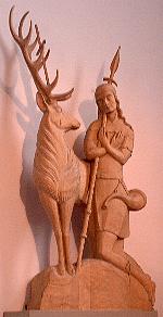 mit einem Hirsch, der ein Kreuz im Geweih trug, zum Christentum bekehrt wurde.